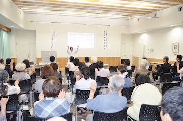 院長の講話では、認知症についての説明の後、会場の皆様と一緒に認知症予防体操「コグニサイズ」を実際にやってみました。